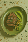 BAYRISCHES RIND Bavette vom bayrischen Rind / Portweinsoße / Hauberlinge / Rosenkohlblätter